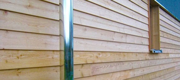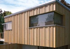 Aufgrund ihres außergewöhnlich langsamen Wachstums ist die Sibirische Lärche von Natur aus besonders widerstandsfähig und formstabil. Mit seiner sehr feinen Struktur, den vorwiegend fest verwachsenen Ästen und der herrlich rötlich-braunen bis gelblich-weißen Anmutung eignet sich dieses Holz besonders für unbehandelte Verarbeitung und natürliche Vergrauung oder die Endbehandlung mit VergrauungslasurDa es sich um eine offene Bekleidung handelt, ist hinter der Traglattung eine UV-beständige, diffusionsoffene Fassadenspannbahn anzubringen, die für den benötigten Schutz vor Schlagregen sorgt.