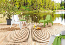 Aufgrund ihres außergewöhnlich langsamen Wachstums ist die Sibirische Lärche von Natur aus besonders widerstandsfähig und formstabil. Mit seiner sehr feinen Struktur, den vorwiegend fest verwachsenen Ästen und der herrlich rötlich-braunen bis gelblich-weißen Anmutung eignet sich dieses Holz besonders für unbehandelte Verarbeitung und natürliche Vergrauung oder die Endbehandlung mit Vergrauungslasur.